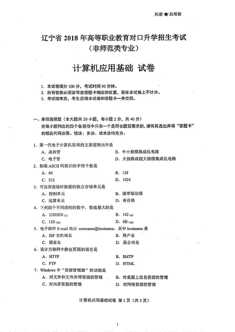 2018年辽宁专升本公共课考试题