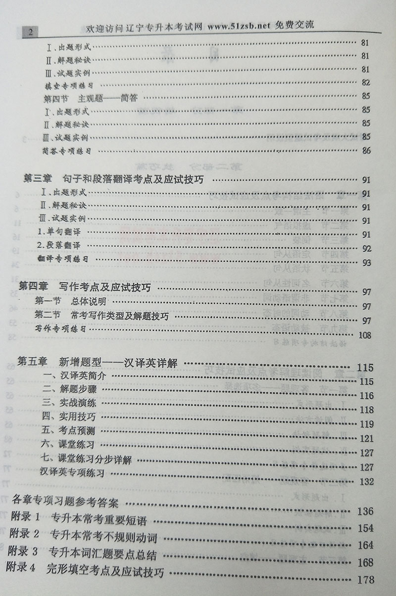 对专升本英语所涉及的语法、词汇和解题技巧进行高度概括、对专升本英语考试各类题型进行深入讲解,涵盖了英语大纲对基础知识、基本技能的考查要求,有利于考生系统复习。温馨提示:本站提供专升本公共课书籍,依据辽宁专升本公共课考试内容编写,可供准备专升本的你参考使用。