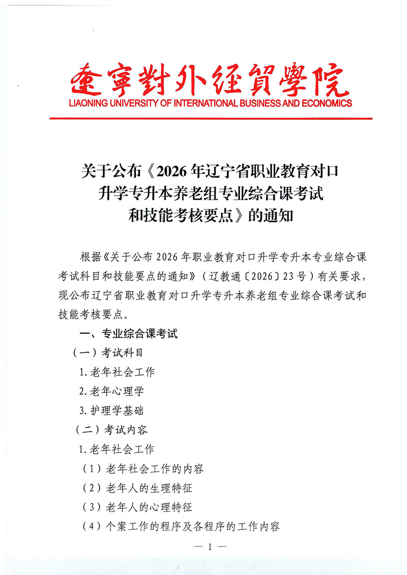 2026年辽宁专升本养老组专业课和技能考核要点